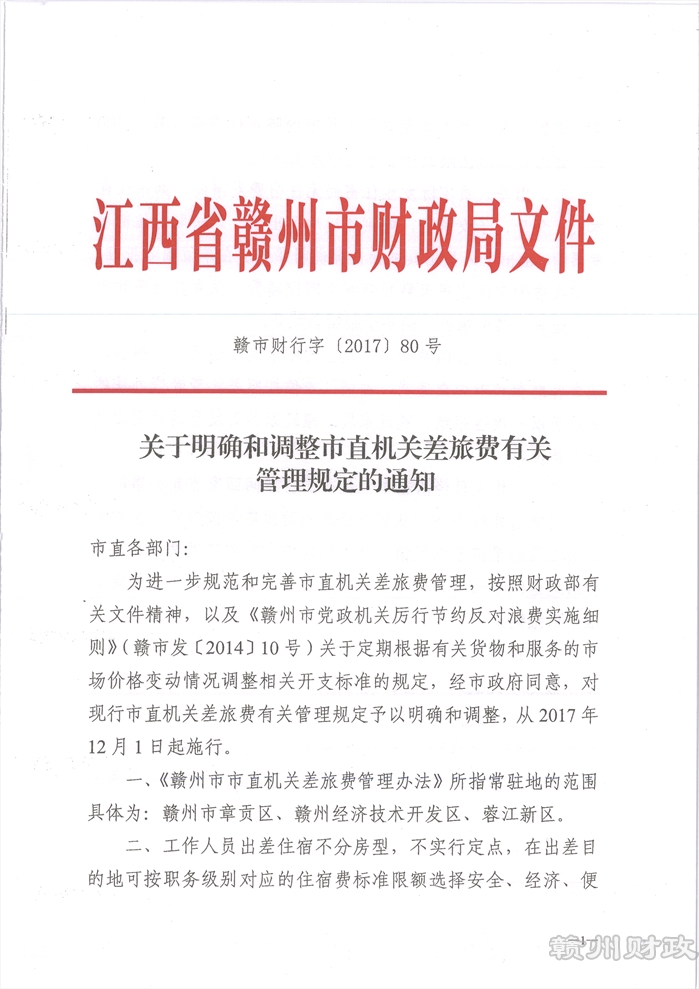 轉《關于明確和調整市直機關差旅費有關管理規定的通知》