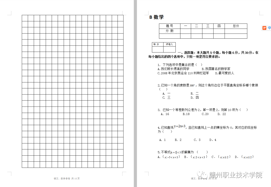 本考試主要考查學生進入高職學院繼續學習所具備的數學基礎知識、基本運算和一些基本技能的掌握程度,并考查學生運用數學解決實際問題的能力。