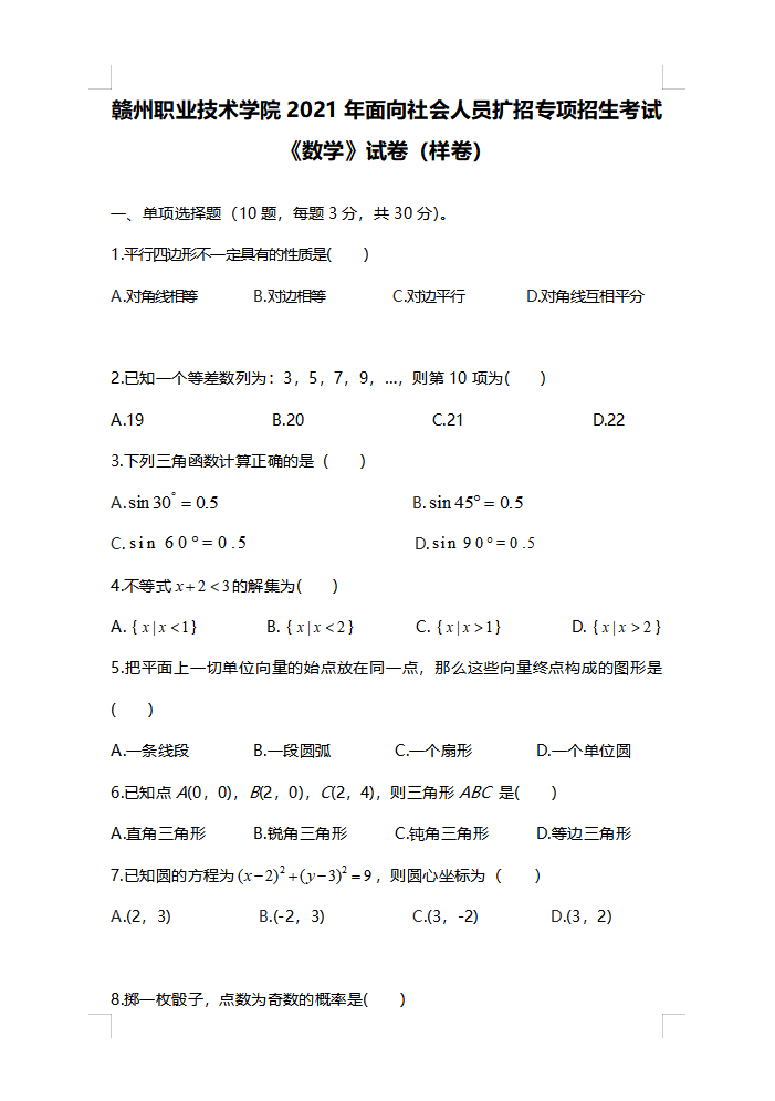 1.本考試大綱是贛州職業技術學院2021年11月擴招社會人員專項考試命題的基本依據。考試內容可在考試大綱規定的范圍內超出10%。