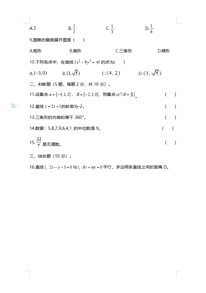 2.試卷結構包括是單項選擇題(約占60%)、判斷題(約占20%)和綜合題(約占20%)三種題型。