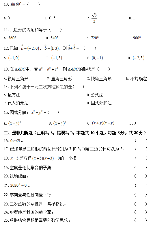 二、是非判斷題(正確寫A,錯誤寫B,本題共30小題,每題3分,共90分)