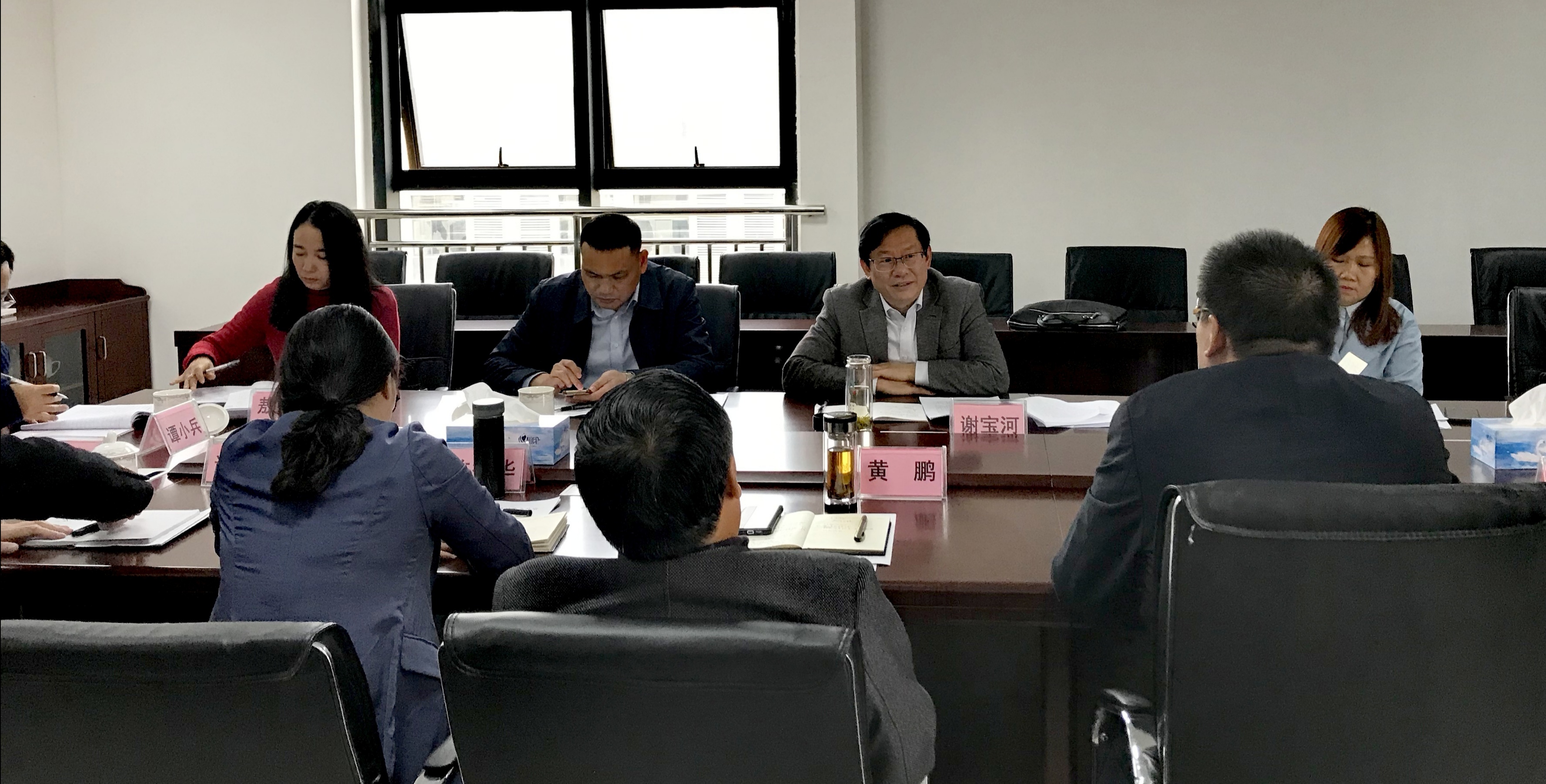 鄒志華書記向謝寶河副主席簡要介紹了我院的基本情況,就制定靈活的人才引進政策,適時建立職教、產教聯盟方面提出建議。黃鵬院長就擴大宣傳,加大設施設備投入,建立統一權威的招生平臺,建設特色專業方面提出建議。