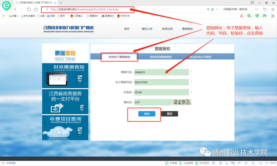 方式二、統(tǒng)一支付平臺(tái)查驗(yàn)(打印):使用電腦登錄江西省非稅收入收繳門戶網(wǎng)站: