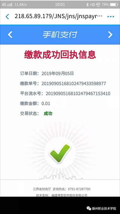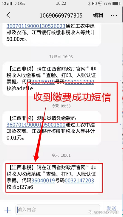 2.收到的【江西非稅】繳款碼及電子票據(jù)短信均為唯一信息,無法二次發(fā)送,請(qǐng)學(xué)生及家長妥善保管,切勿刪除;