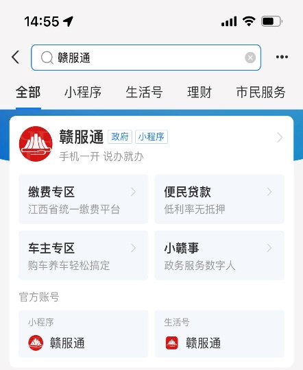 1、支付寶掃描二維碼直接進(jìn)入"學(xué)平險(xiǎn)"服務(wù),或搜索“贛服通”進(jìn)入小程序點(diǎn)擊“學(xué)平險(xiǎn)”進(jìn)入服務(wù)。