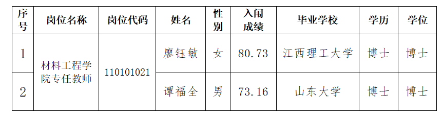 根據《贛州市2024年“引才聚贛州 攜手創未來”事業單位招聘高層次人才(西安站)公告》規定,本次招聘報名、資格審查、面試考核、體檢、政審考察等程序已完成,現將擬聘用人員名單公示如下:
