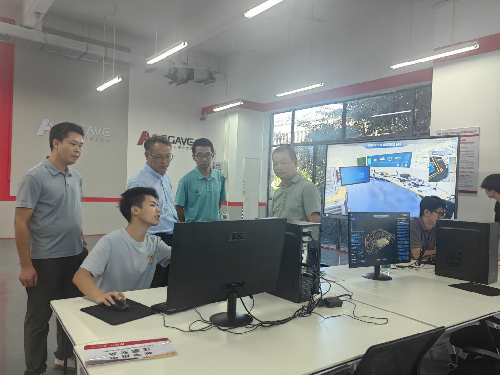 吳躍文實地考察了項目培訓室、虛擬仿真實訓室、技能實操實訓室,了解德國“雙元制”人才培養模式、“用戶委托、工單引領、問題導向”授課模式、“導學、信息、規劃、決策、執行、檢查、評判、系統化”八步教學法等項目運行情況,觀摩學生虛擬仿真和實操技能訓練,詳情詢問項目教師教學、學生課程學習及技能實踐等方面的情況。項目團隊就人才培養模式創新、課程資源轉化建設、教學團隊國際化賦能、教科研成果孵化、區域產業經濟服務等方面進行了詳細匯報。