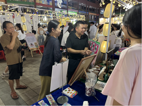 9月28日晚,由市社科聯(lián)主辦的“社科之夜”文明集市活動在贛南大學(xué)城內(nèi)火熱開展。學(xué)校黨委委員、副校長方敏、科研與對外交流合作處負責(zé)人、藝術(shù)設(shè)計學(xué)院及現(xiàn)代農(nóng)林工程學(xué)院部分師生參加此次活動。