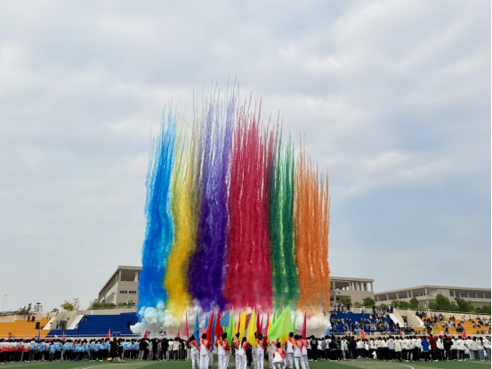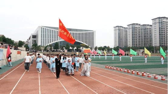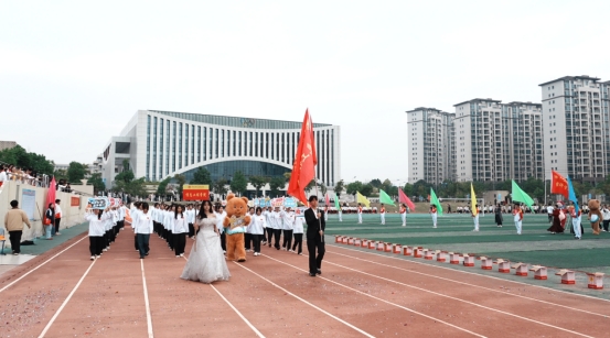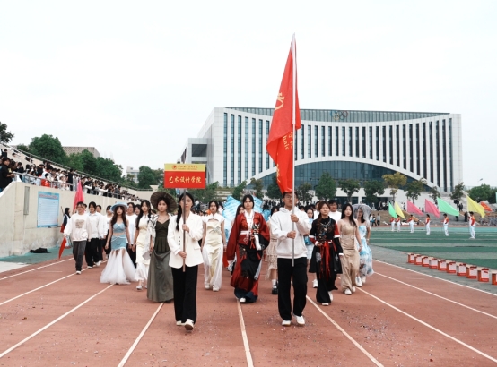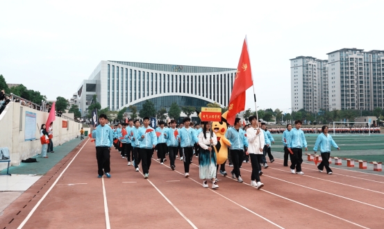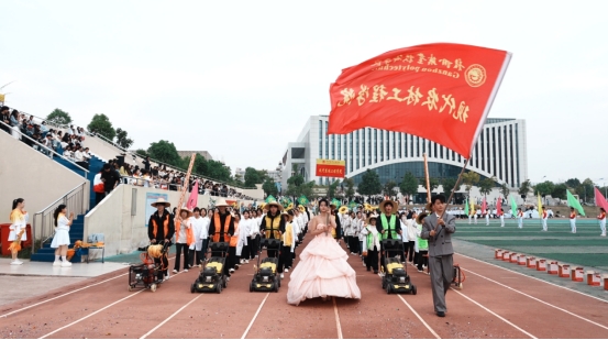 現(xiàn)代服務(wù)學(xué)院方陣滿含服務(wù)熱忱,托育、養(yǎng)老、旅游專業(yè)的學(xué)子們,將課堂上的愛心與溫情,化作賽場上的協(xié)作力量;現(xiàn)代農(nóng)林工程學(xué)院方陣扎根“農(nóng)”的土壤,以“以農(nóng)為基、以技為翼”的信念,在跑道上展現(xiàn)踏實(shí)肯干的品格;信息工程學(xué)院代表隊(duì)高舉院旗走來,步伐鏗鏘、面容昂揚(yáng)。他們攜代碼世界的專注與執(zhí)著,以團(tuán)結(jié)拼搏勁頭挑戰(zhàn)賽場,盼這群技術(shù)少年綻放光彩;藝術(shù)設(shè)計(jì)學(xué)院方陣宛如躍動(dòng)在畫卷上的音符,手中的道具、創(chuàng)意的編排,讓藝術(shù)與體育碰撞出獨(dú)特火花;智能制造學(xué)院方陣則以萌趣的拉布布玩偶、五彩的升空氣球、絢麗的金銀彩煙,詮釋著“以技立身、以智報(bào)國”的創(chuàng)新精神。