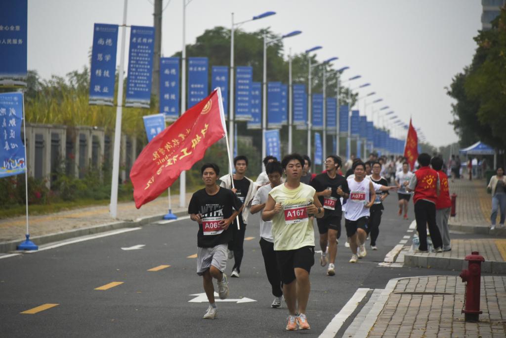 賽道沿校園圍墻綿延鋪展,串聯起校內外獨有的秋日景致與青春律動。學校專業教師、校醫全程護航,確保活動安全有序。各二級學院學生黨支部發揮戰斗堡壘作用,組織師生在10個保障點提供志愿服務。90余名教師下沉社區,與學生們并肩奔跑,傳遞溫暖與鼓勵。
