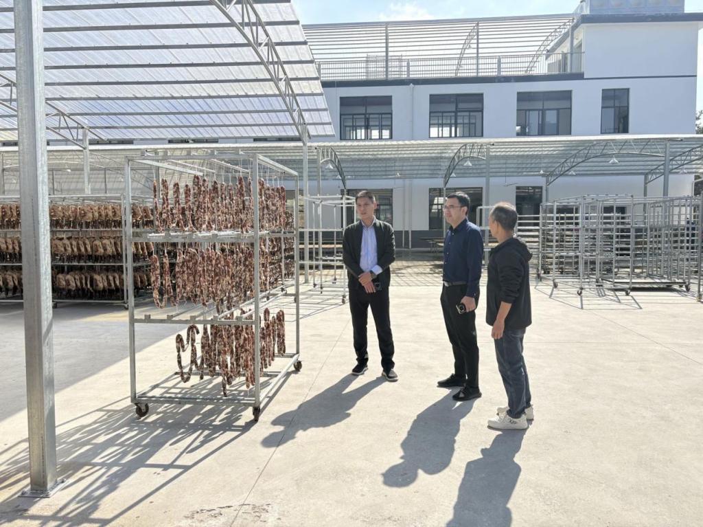 溫學延一行還前往鄉村振興特色產業點鄧旺德板鴨廠實地調研。在基地負責人的帶領下,實地查看板鴨腌制、晾曬、包裝等生產環節,詳細了解基地規模、生產工藝、產品銷路及經濟效益。