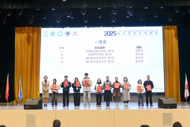 11月23日,大賽閉幕儀式在我校舉行。贛州市委教育工委副書記賴曉琴,贛州職業技術學院黨委書記溫學延,仲裁長高學鵬、裁判長陳星星、專家組長鄭志勇、技術支持單位代表以及全體參賽師生、嘉賓、新聞媒體工作者等齊聚一堂,共同見證賽事收官。閉幕式由我?,F代農林工程學院黨總支副書記、副院長張紅宇主持。