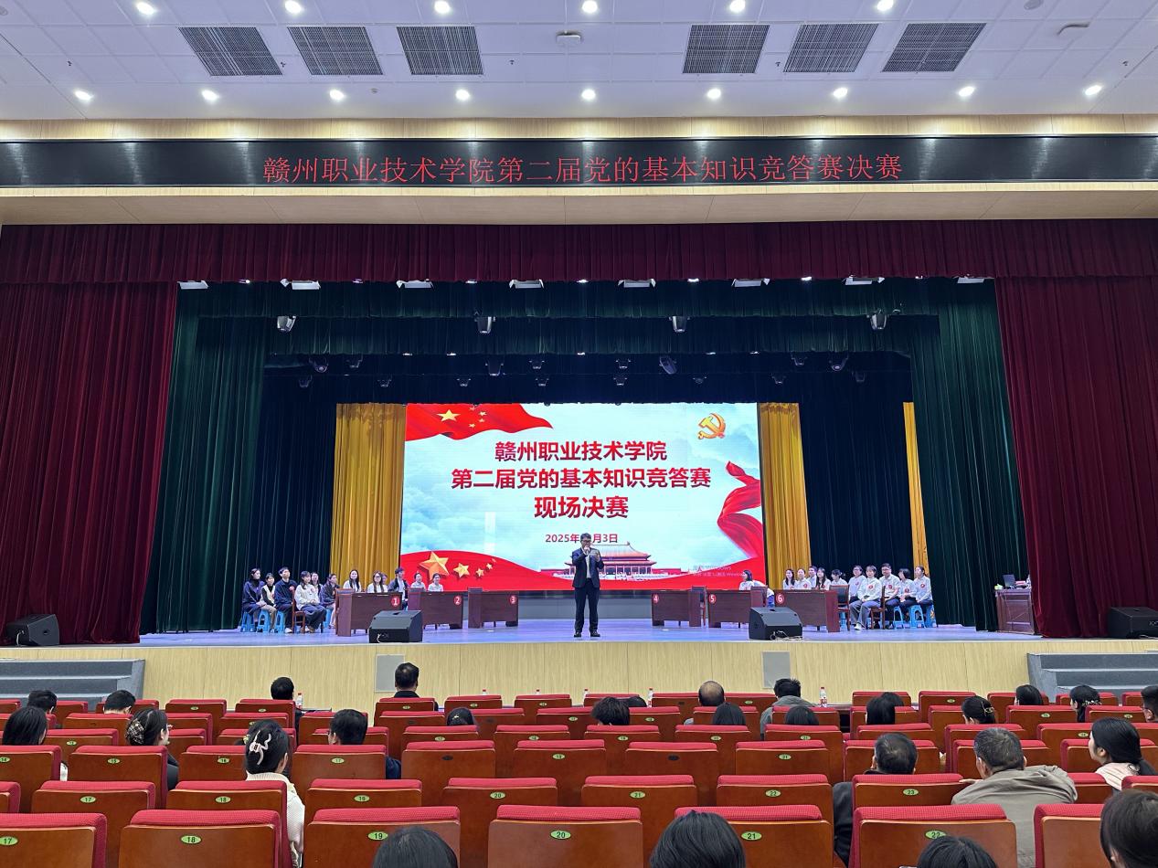 為深入學(xué)習(xí)貫徹習(xí)近平新時(shí)代中國(guó)特色社會(huì)主義思想,全面貫徹黨的二十大和二十屆歷次全會(huì)精神,引導(dǎo)廣大師生在篤行實(shí)干中彰顯責(zé)任擔(dān)當(dāng),12月3日下午,學(xué)校在行知樓一樓報(bào)告廳舉行第二屆黨的基本知識(shí)競(jìng)答賽決賽。黨委副書(shū)記湯曉軍,黨委委員、組織部部長(zhǎng)溫繼榮及各二級(jí)學(xué)院師生黨員代表等共計(jì)五百余人到場(chǎng)觀(guān)看。
