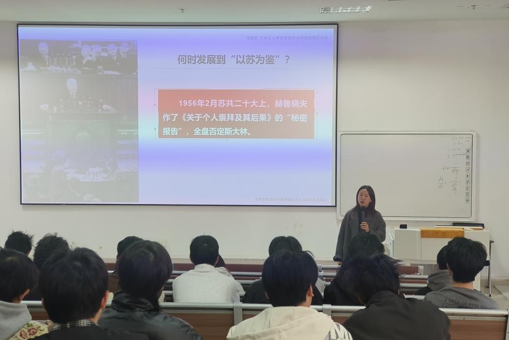 鄭芝丹老師以社會主義建設道路初步探索的理論成果為核心授課內(nèi)容,創(chuàng)新性地通過問題鏈設計引導學生深度思考,讓理論學習從“被動接收”轉(zhuǎn)為“主動探究”,讓學生深刻認識到:從“師”到“鑒”的轉(zhuǎn)變,彰顯了中國共產(chǎn)黨獨立自主的探索精神,而初步探索的理論成果,正是在直面矛盾、回應問題中形成的真理結(jié)晶。