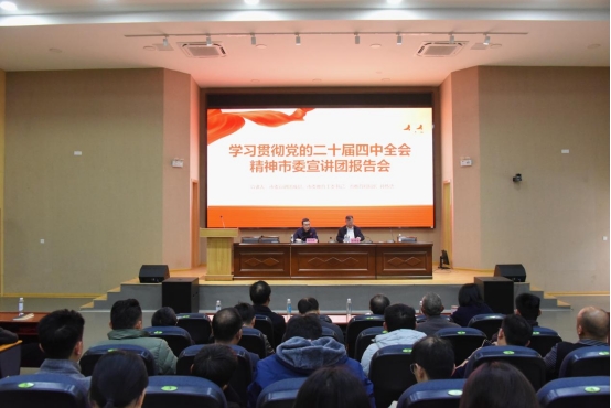 為深入學習貫徹黨的二十屆四中全會精神,切實把全校師生的思想和行動統一到黨中央決策部署上來,12月18日下午,學校在公共實訓基地二樓報告廳舉行專題宣講會。市委宣講團成員、市委教育工委書記、市教育局局長孫傳忠來校作宣講報告,學校黨委書記溫學延主持報告會,黨委副書記、校長吳躍文等領導班子成員,中層干部及各二級學院師生代表三百余人聆聽了報告會。