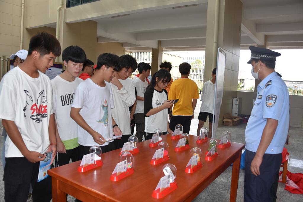本次活動共三項流程,一是“認識毒品種類”,活動現場陳列了各種毒品的模型,派出所民警對毒品種類進行詳細地介紹,對毒品的危害進行了深刻的解讀,讓學生能夠更加直觀和清楚地認識;二是“認識毒品的危害”,現場展示了吸毒危害的漫畫圖片和吸毒者的真實照片,圖片生動詳實,觸目驚心,詳細介紹了毒品的傳播途徑,以及毒品給人在身心上造成的嚴重損害,給家庭、社會帶來巨大傷害;最后所有參觀的師生在禁毒橫幅上簽下名字,宣誓日后堅決抵制毒品。(復審人:陳根生)