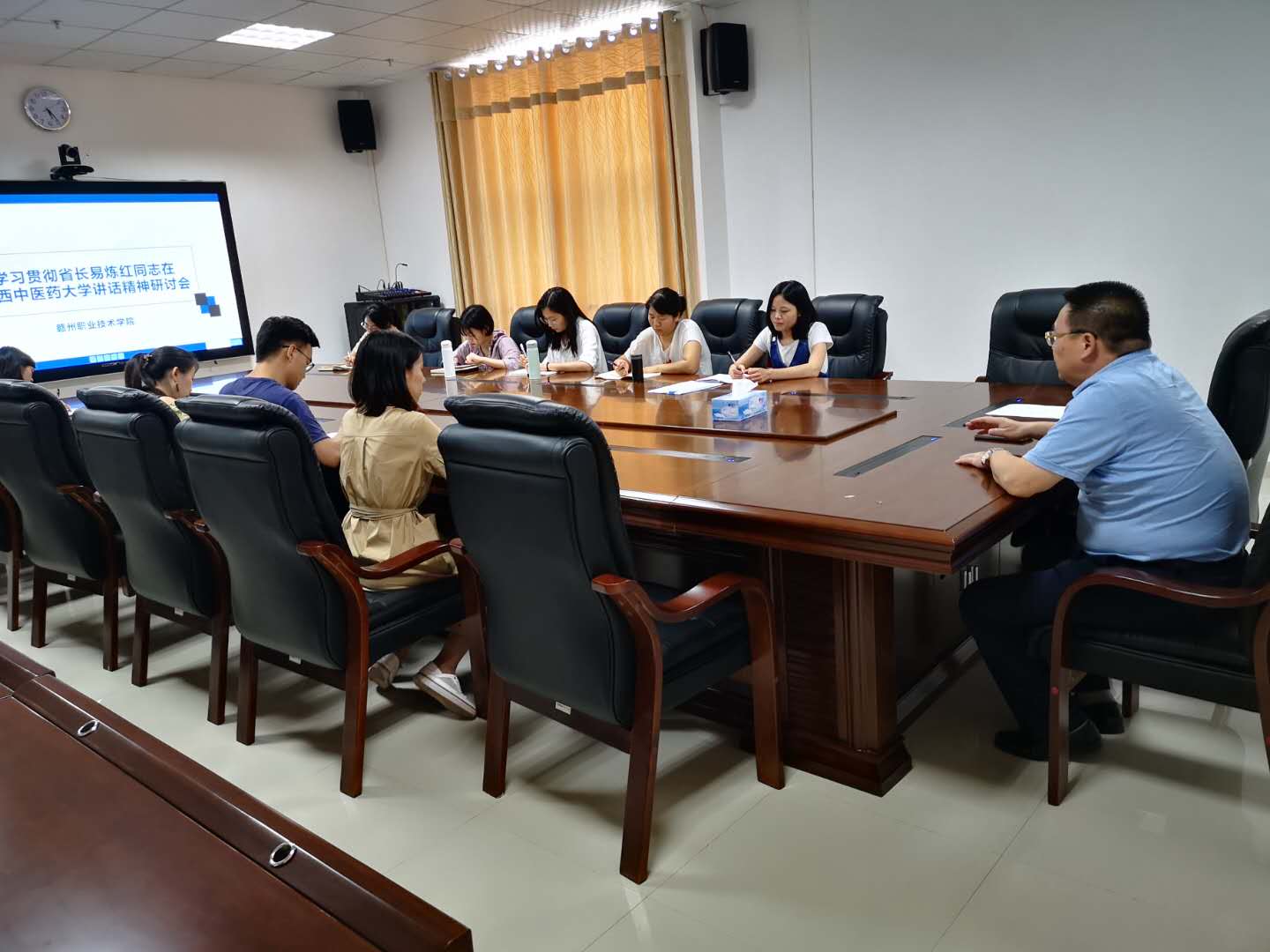 講座結(jié)束后,鄒志華在行知樓602室主持召開(kāi)“學(xué)習(xí)貫徹省長(zhǎng)易煉紅同志在江西中醫(yī)藥大學(xué)講話精神”的研討會(huì),全體思政教師及其輔導(dǎo)員參加。
