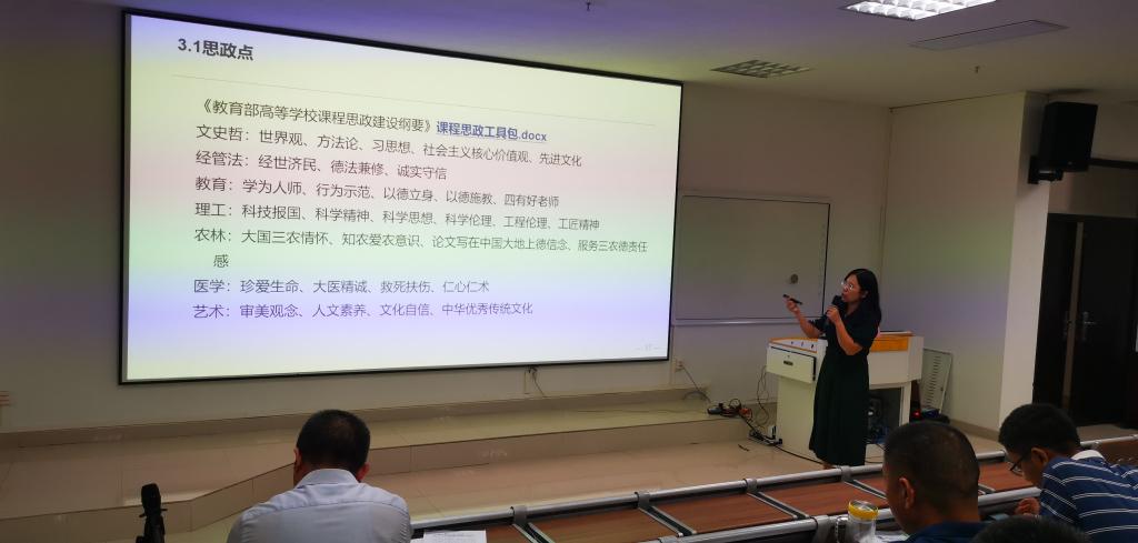 為了落實(shí)好立德樹人根本任務(wù),健全德技并修人才,下午14:30,李紅霞副教授為大家進(jìn)行課題為“‘課程思政’教學(xué)方案與內(nèi)容的構(gòu)建完善”的精彩授課。近5年來,李教授主持省部級(jí)教研項(xiàng)目1項(xiàng),獲省級(jí)教學(xué)成果二等獎(jiǎng)1項(xiàng),參與國家級(jí)教研項(xiàng)目2項(xiàng),?。ú浚┘?jí)教研項(xiàng)目1項(xiàng),省級(jí)教學(xué)成果一等獎(jiǎng)1項(xiàng)、二等獎(jiǎng)1項(xiàng)。在《教育研究》、《教育與職業(yè)》等核心以上期刊發(fā)表論文多篇,出版編著《課程思政:我們這樣設(shè)計(jì)》,在課堂思政教學(xué)方面有豐富的經(jīng)驗(yàn)。課堂上,李教授為大家具體解讀了《高等學(xué)校課程思政建設(shè)指導(dǎo)綱要》,她強(qiáng)調(diào),要深刻認(rèn)識(shí)全面推進(jìn)高校課程思政建設(shè)的戰(zhàn)略意義,充分發(fā)揮好專業(yè)課教師“主力軍”、專業(yè)課教學(xué)“主戰(zhàn)場”、專業(yè)課課堂“主渠道”的作用,推動(dòng)課程思政建設(shè)不斷取得新進(jìn)展新成效。