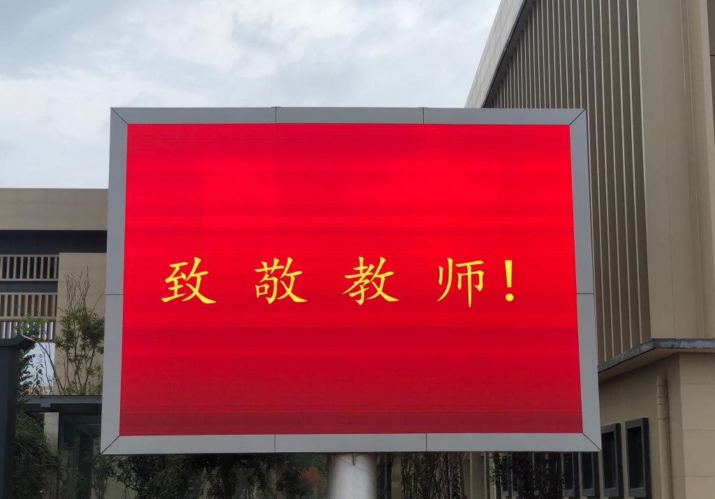 在學(xué)院南大門、行知樓一樓、行知大道、體育場(chǎng)大屏四個(gè)標(biāo)志性建筑及行知樓電子顯示屏滾動(dòng)播放“老師,您好!”“致敬教師!”“聽(tīng)我說(shuō)謝謝您”等視頻,并循環(huán)播放學(xué)院優(yōu)秀教師、優(yōu)秀輔導(dǎo)員、優(yōu)秀教育工作者先進(jìn)事跡。