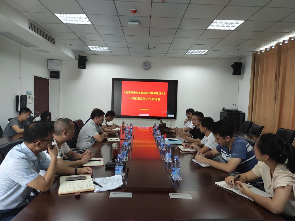 9月10日,“1+X”《寵物護(hù)理與美容職業(yè)技能等級證書》培訓(xùn)評價組織領(lǐng)導(dǎo)中國畜牧業(yè)協(xié)會犬業(yè)分會副會長王武先生與名將寵美教育科技(北京)有限公司薄揚先生蒞臨我校指導(dǎo)交流“1+X”項目試點工作。分管領(lǐng)導(dǎo)謝敏、謝蔚明,以及教務(wù)處、實訓(xùn)中心、動物科學(xué)系等部門負(fù)責(zé)人、相關(guān)學(xué)科帶頭人和專業(yè)教師參加了此次交流會。