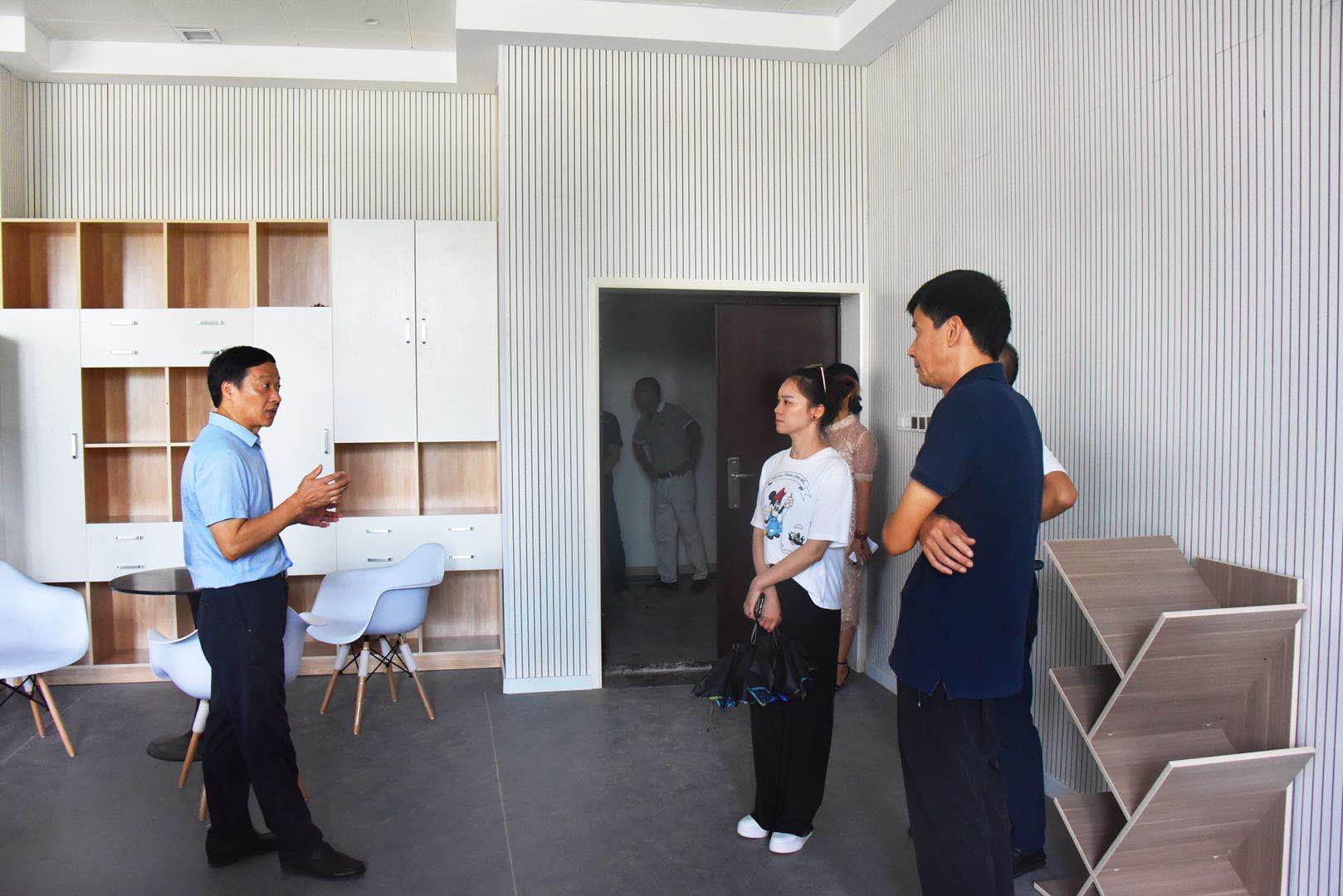 在行知樓、圖書館局部二次裝修項目現場,黃鵬一行詳細聽取了相關負責人情況匯報。學院二次裝修項目總概算投資1800萬元,共七個功能區,包括行知樓825座多功能會議室、185座學術報告廳(下一步將建設為VR室)、130座中型會議室和圖書館208座學術報告廳、現代休閑式電子閱覽室、60座視聽室和28座休息區。目前已交付了中型會議室、電子閱覽室、休息區和視聽室等五個功能區的裝修部分,剩余兩個功能區將在下月底交付使用。
