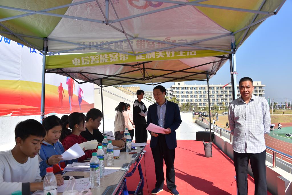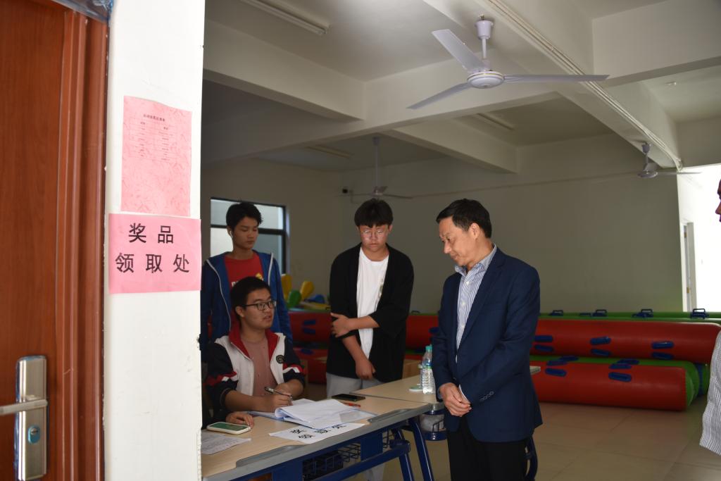 黃鵬一行實地觀看了跑步、跳高、摸石頭過河、巨人腳步等比賽項目,聽取了學生工作部負責人陳昌國對運動會召開情況的介紹。