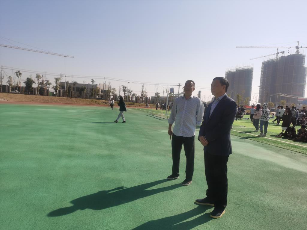 11月12日,運動會第二天,黃鵬院長帶領校運動會組委會成員到南田徑運動場視察運動會情況。