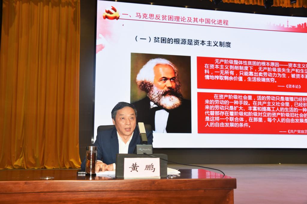 首先,黃鵬院長指出,從馬克思主義反貧困理論來看,導(dǎo)致貧困的根本原因是資本主義制度,反貧困的路徑在于推翻資本主義制度,建立共產(chǎn)主義制度。中國共產(chǎn)黨自成立之日起,就將改變舊中國的社會性質(zhì)和中國人民的悲慘命運扛在自己的肩上,帶領(lǐng)人民推翻“三座大山”,進(jìn)行“三大改造”,確立了我國的根本制度,即社會主義制度,并結(jié)合我國各個歷史發(fā)展階段的主要問題,科學(xué)總結(jié)出消除貧困是鞏固工農(nóng)聯(lián)盟的需要,是社會主義的本質(zhì)要求,是全面建成小康社會的需要,也是構(gòu)建人類命運共同體的需要。