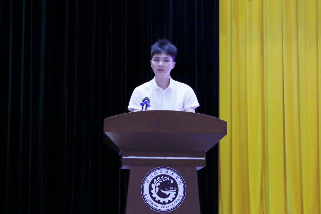 會上,動物科學系畜牧獸醫專業賴中豪作為畢業生代表發言,機電工程系熊蘇英作為教師代表發言。