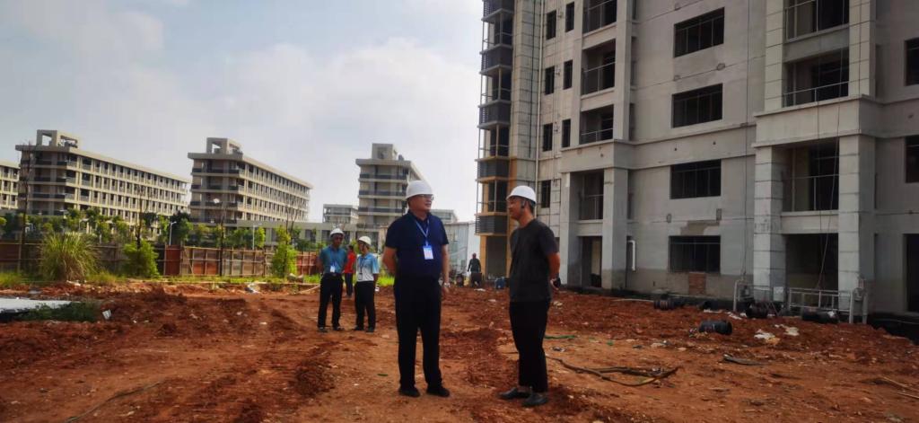 在教師周轉(zhuǎn)房建設(shè)工地,鄒志華現(xiàn)場(chǎng)聽取了項(xiàng)目管理部匯報(bào)的工程進(jìn)展情況,并就下一步周轉(zhuǎn)房建設(shè)工作提出具體要求。他指出,因?yàn)閷W(xué)院工作需要,原本用來(lái)教師休息的值班房住上了學(xué)生,要在確保建筑安全和質(zhì)量的前提下,加快推進(jìn)后續(xù)工程進(jìn)展,爭(zhēng)取讓教職工早日住進(jìn)新居。