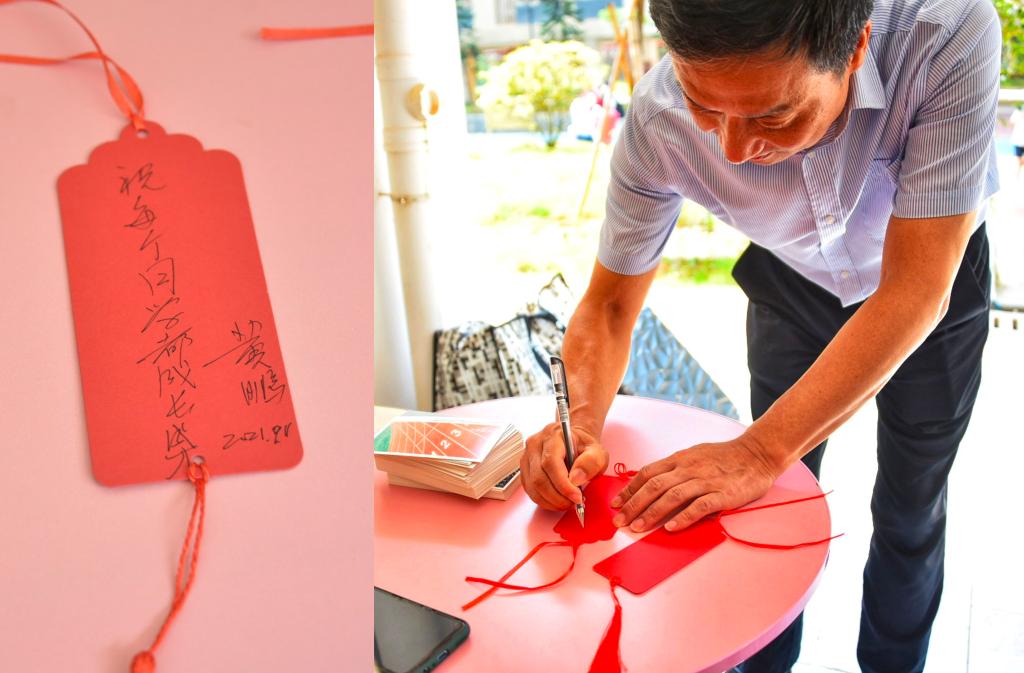 黃鵬在時(shí)光郵局為學(xué)生書寫祝福語(yǔ)