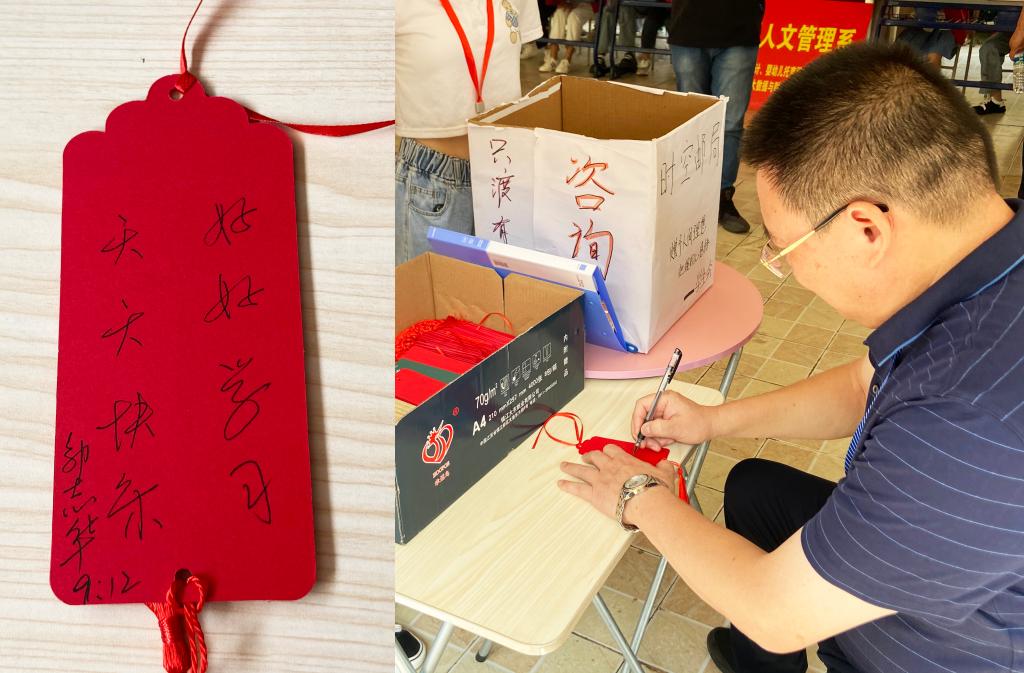 鄒志華在時(shí)光郵局為學(xué)生書寫祝福語(yǔ)