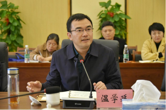 溫學延代表學院對吳躍文一行的到來表示熱烈的歡迎,黃鵬介紹了學院基本情況,各相關職能部門介紹了學院部門發展具體情況。