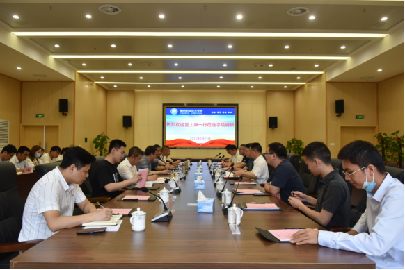 4月28日上午,富士康資深經理、贛州專案人力組組長劉青玉、贛州經開區黨群工作部部長余少卿一行到學院調研并洽談合作事宜,學院黨委書記溫學延出席座談,院領導潘建忠、歐陽榮華參加座談。