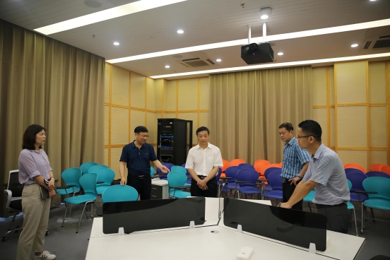 黃鵬一行先后深入思政項目建設、校園電視臺項目建設、師生一站式服務中心和檔案室等地方察看,聽取相關部門人員的情況匯報,提出了對項目建設的指導性意見。