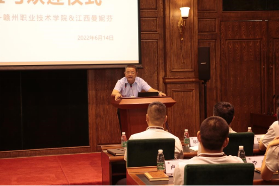儀式上,歐陽榮華寄語,希望同學(xué)們轉(zhuǎn)變思想觀念,在教學(xué)實(shí)習(xí)階段,兼具學(xué)生和企業(yè)員工雙重身份,遵守學(xué)院和企業(yè)的各項(xiàng)規(guī)章制度。要弘揚(yáng)勞動(dòng)精神,在企業(yè)教學(xué)實(shí)習(xí)過程中,積極勞動(dòng)實(shí)踐,提高自身綜合素質(zhì)。
