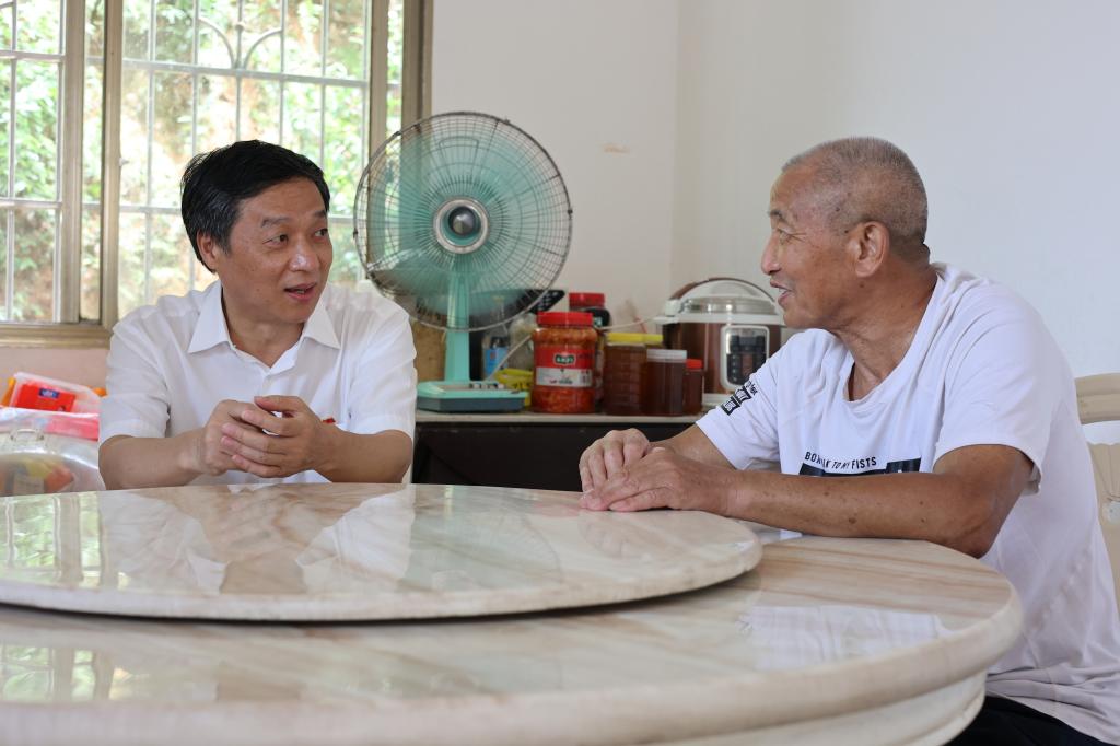 揭牌儀式后,黃鵬一行分別來到梅山村老黨員家中進行慰問,與他們親切交談,了解他們的生活、身體狀況,鼓勵他們發揮余熱,為當地鄉村建設貢獻力量。
