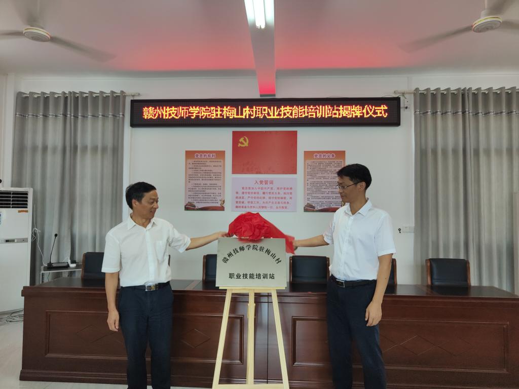 儀式上,贛州技師學院駐梅山村第一書記宣讀了設立贛州技師學院駐梅山村職業技能培訓站會議紀要,贛州技師學院、縣人社局、梅山村村委會等相關負責人進行了致辭。
