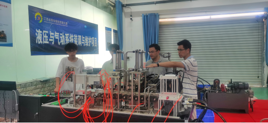 在智能家居技能競賽訓練基地,溫學延提出,要以世界青年技能日為契機,把“工學一體 技能就業”的種子根植在學院學子心中,讓青年學生在技能學習中發現廣闊天地,在勞動實踐中體現價值、展現風采、感受快樂,展現青春擔當、貢獻智慧力量,努力成長為新時代高素質技能人才。