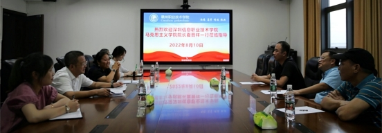 8月10日下午,深圳信息職業技術學院馬克思主義學院院長夏晉祥一行來我院考察并座談交流,座談會由學院副院長歐陽榮華主持,馬克思主義學院負責人宋華、副院長龍彥廷及思政課教師代表參加座談。