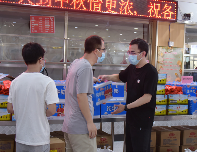 李方柏表示,在中秋團圓之日,學院在中秋節為在校的同學們送上月餅,就是為了讓大家在中秋團圓日里也能在學校里感受到溫暖,他還囑咐同學們在疫情面前要做好自我防護。