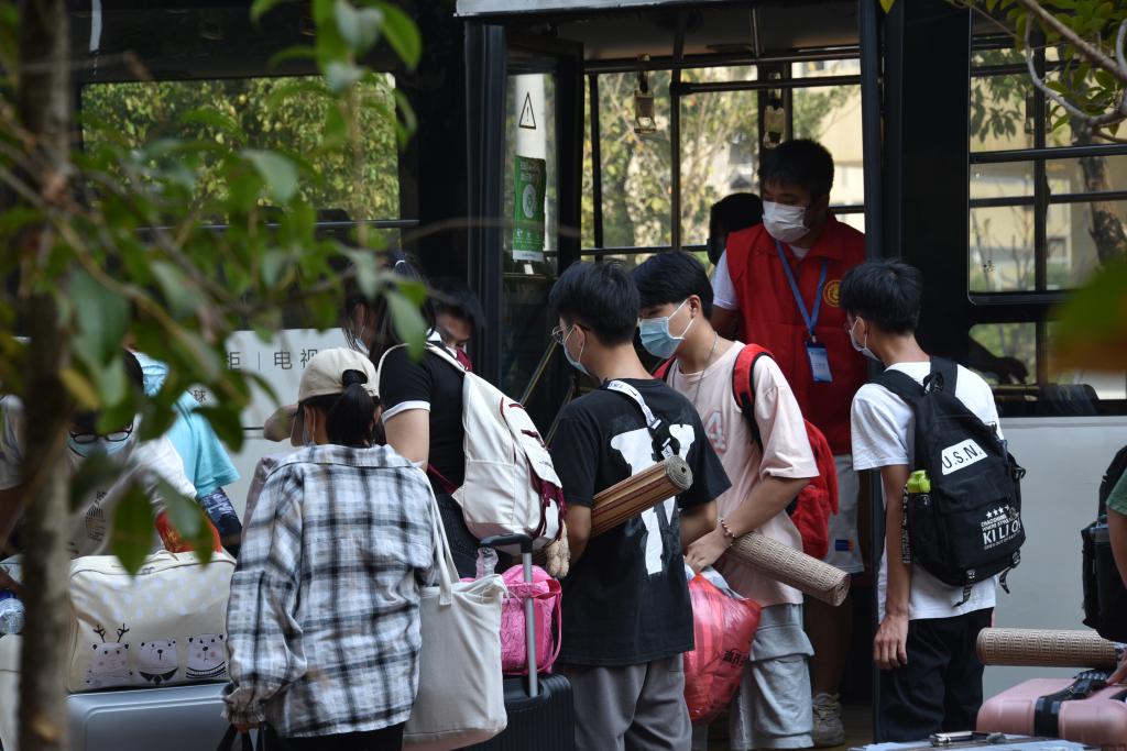 9月30日,迎新第二天,新生報到的各項工作仍有序進行,迎新工作人員、志愿者們依舊活躍在校園里,為剛踏入校園的新生答疑解惑。