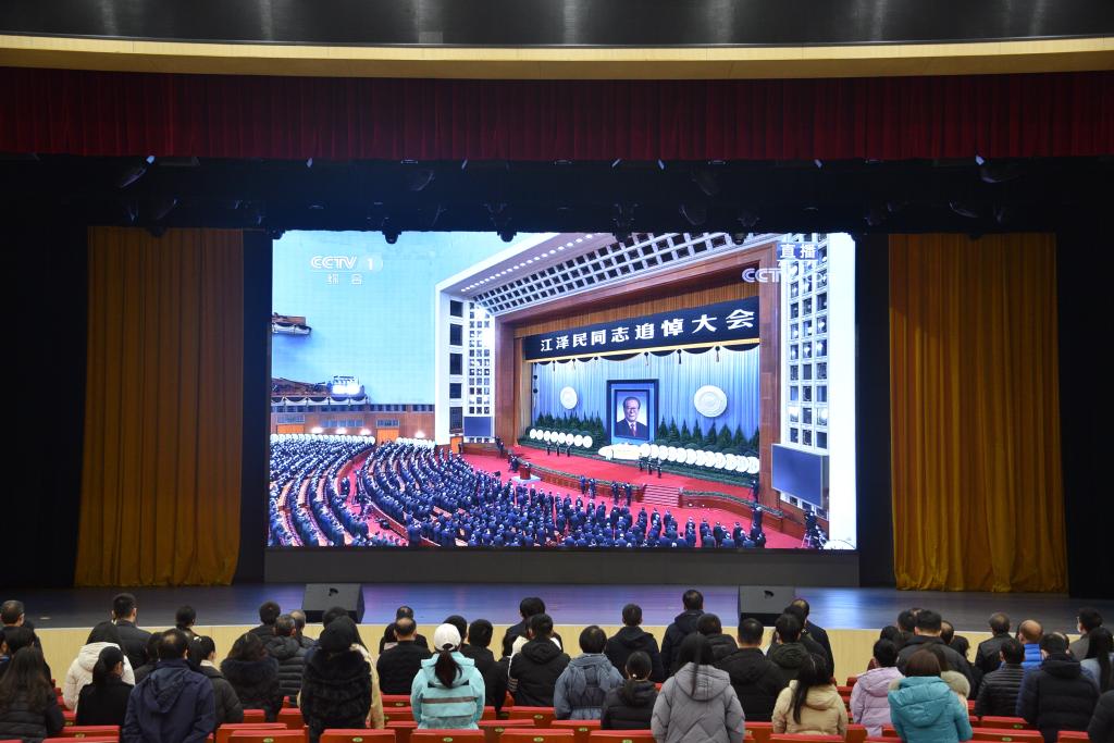 12月6日上午10時,黨中央、全國人大常委會、國務院、全國政協、中央軍委在北京人民大會堂隆重舉行江澤民同志追悼大會,學院組織全體師生收聽收看了江澤民同志追悼大會,表達深切悼念之情。