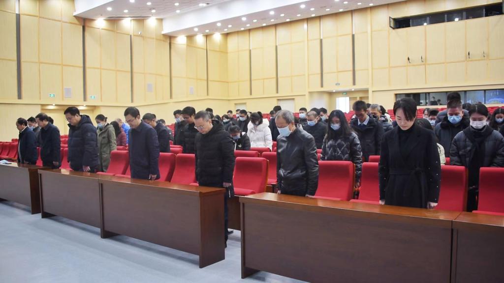 在學院行知樓一樓報告廳,學院黨委書記溫學延,黨委副書記、院長李方柏等在家領導班子成員,各部門工作人員及除上課之外的教師深色著裝,在莊嚴肅穆的氣氛中,全體人員默哀三分鐘,并通過現場直播收聽收看了江澤民同志的追悼會。