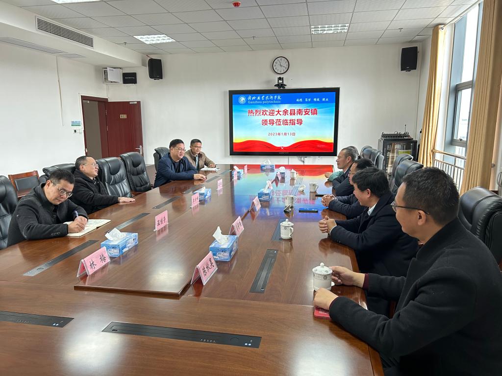 1月13日上午,學(xué)院鄉(xiāng)村振興聯(lián)系點(diǎn)大余縣南安鎮(zhèn)黨委副書記、鎮(zhèn)長寧琳,鎮(zhèn)人大主席陳永財(cái),梅山村黨支部書記羅利聰,國家廣播電視總局援派掛職干部陳秋昊一行來校座談交流。學(xué)院黨委副書記、院長李方柏出席座談會并講話,黨委副書記湯曉軍,學(xué)院駐村第一書記肖修昆和組織人事處、宣傳統(tǒng)戰(zhàn)部等部門負(fù)責(zé)同志參加活動。