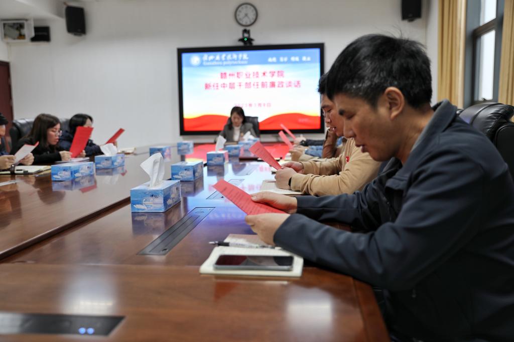 開展集體廉政談話,吹好廉政之風。學院紀委主要負責同志強調新任中層干部要旗幟鮮明講政治,做到對黨忠誠。切實把講政治、顧大局作為領導干部從政基本素養,培養正確權力觀、利益觀、政績觀;要不斷加強學習,提升綜合素質。把加強學習作為保持正確的政治方向、提高領導水平、打開工作局面、提高履職能力的有效方法;要始終激情干事,勇創一流業績。強化擔當作為,做到勤政務實、開拓進取;要堅持廉潔從政,爭當勤廉表率,堅持把紀律規矩挺在前面,確保干凈干事不出事,健康成長不掉隊。