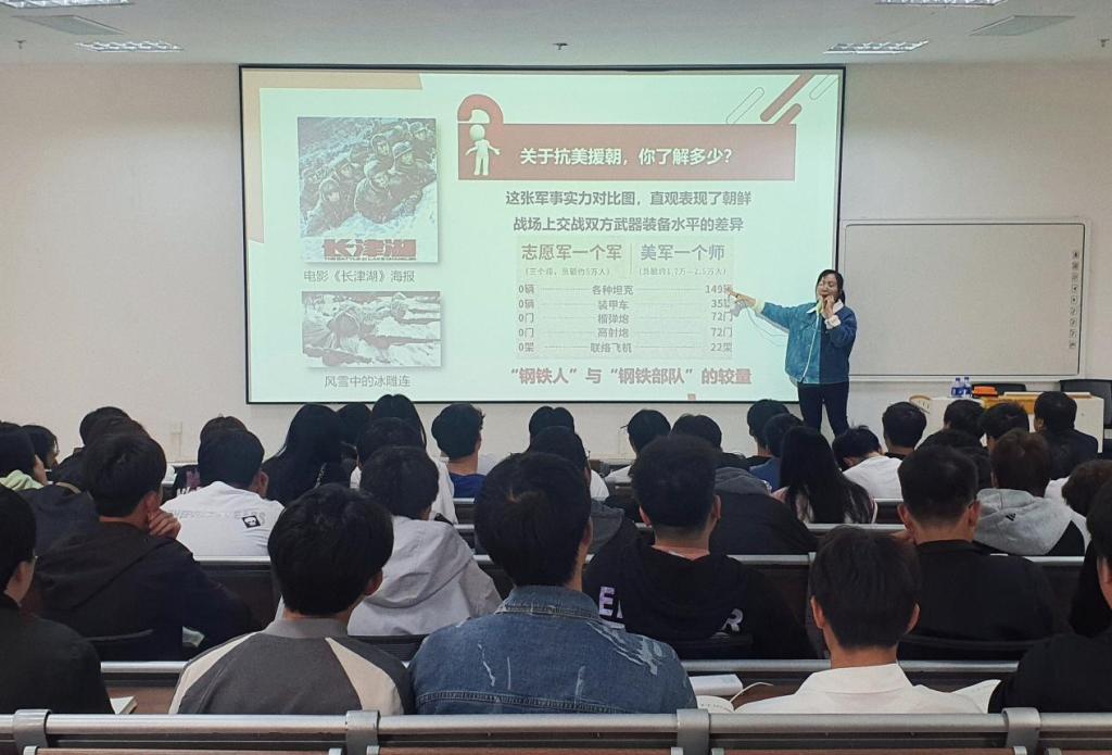 此次“推門(mén)聽(tīng)課”隨機(jī)聽(tīng)取了何棋威老師的《毛澤東思想和中國(guó)特色社會(huì)主義理論體系概論》課程,她以“抗美援朝”為例向?qū)W生講述了中國(guó)進(jìn)行社會(huì)主義工業(yè)化的必然性,同時(shí)引申出了新民主主義社會(huì)中面臨的種種問(wèn)題、進(jìn)行社會(huì)主義改造的必要性,告誡青年學(xué)生掌握本領(lǐng)、發(fā)憤圖強(qiáng),投身于建設(shè)社會(huì)主義現(xiàn)代化強(qiáng)國(guó)的偉大征程之中。
