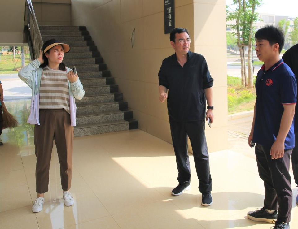 5月15日上午,學院黨委書記溫學延對職教活動周啟動儀式籌備工作進行現場調度,黨委副書記湯曉軍,黨委委員、宣傳統戰部曾衛平及黨政辦公室等相關人員陪同。