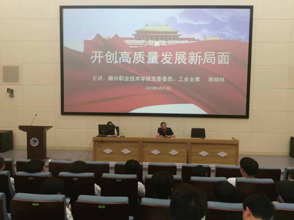 為深入學(xué)習(xí)宣傳貫徹黨的二十大精神,5月31日下午,學(xué)院黨委委員、工會(huì)主席熊曉林以《開創(chuàng)高質(zhì)量發(fā)展新局面》為主題,為學(xué)院師生講授“形勢(shì)與政策”課。