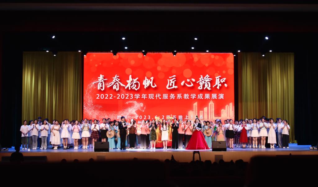 6月2日晚上,現(xiàn)代服務系在行知樓一樓報告廳舉辦2022-2023年“青春揚帆匠心贛職”教學成果展演。院領導黃鵬、廖凌和現(xiàn)代服務系全體師生一同觀看本次演出。